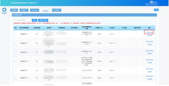 在企業(yè)業(yè)績頁面中查看企業(yè)工程業(yè)績信息。目前業(yè)績數(shù)據(jù)來自江蘇省建筑市場監(jiān)管與誠信信息一體化平臺,無需企業(yè)手動(dòng)進(jìn)行維護(hù)。其中“對應(yīng)工程類別要求”或“工程類別等級”若無數(shù)據(jù),需按照真實(shí)情況手動(dòng)進(jìn)行維護(hù)