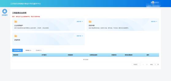 點(diǎn)擊首頁“企業(yè)管理”模塊中“工程監(jiān)理企業(yè)資質(zhì)”圖標(biāo)可進(jìn)入工程監(jiān)理企業(yè)資質(zhì)功能模塊頁進(jìn)行相關(guān)業(yè)務(wù)維護(hù)和辦理。