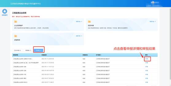 “詳情”可查看審批結(jié)果和申報(bào)內(nèi)容。
