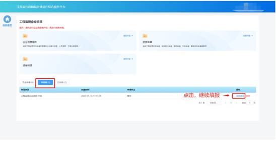 若企業(yè)在上傳蓋章掃描件之前退出了系統(tǒng),下次可在“草稿箱”板塊點(diǎn)擊“繼續(xù)填報(bào)”進(jìn)入申請頁面繼續(xù)上傳蓋章掃描件。