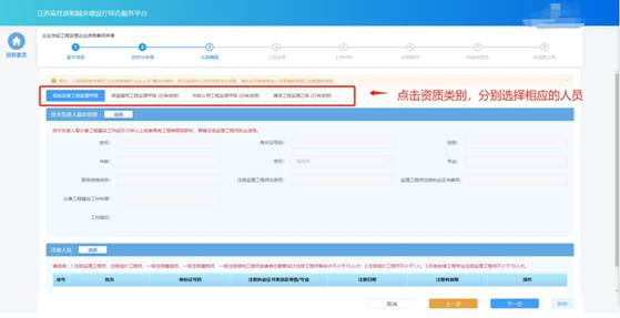 資質(zhì)申請需要的人員選擇完成后,點(diǎn)擊“下一步”按鈕,系統(tǒng)會(huì)按照所
