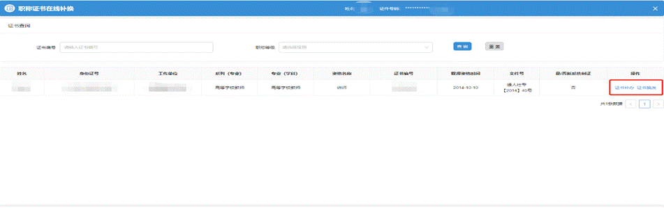 (1)選擇對(duì)應(yīng)的要補(bǔ)辦(換發(fā))的證書信息,點(diǎn)擊證書補(bǔ)辦或證書換發(fā)