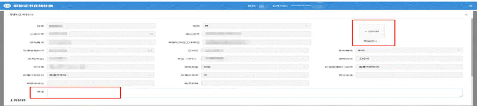 (2)頁(yè)面中上傳照片,在備注中填寫對(duì)職稱證書有異議的情況,點(diǎn)擊提交申請(qǐng),等待人社部門審核即可。