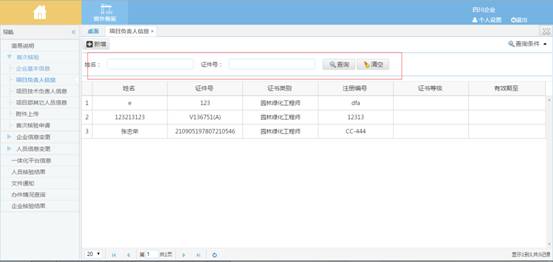 3.3.2.2項(xiàng)目負(fù)責(zé)人信息打開【項(xiàng)目負(fù)責(zé)人】頁(yè)面,默認(rèn)展示當(dāng)成已有的項(xiàng)目負(fù)責(zé)人列表。在這個(gè)列表頁(yè)面上,可以進(jìn)行新增,編輯,刪除,查詢的操作。