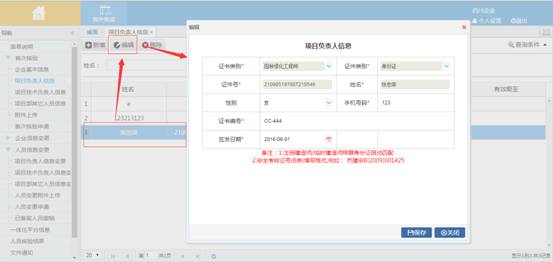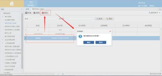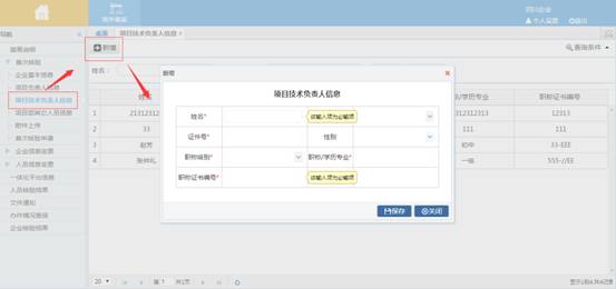同【項(xiàng)目負(fù)責(zé)人】相同,【項(xiàng)目技術(shù)負(fù)責(zé)人】也有新增、編輯、刪除、查詢的功能。不同的是人員的必填項(xiàng)不同。