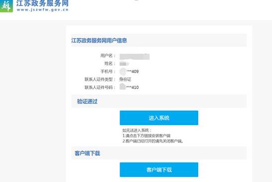 新用戶完成初始化后進行登錄,在政務(wù)網(wǎng)登錄后點擊“進入系統(tǒng)”(注:如首次登錄,請先點擊客戶端下載進行安裝)