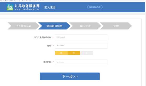 (2)需注冊的用戶點擊“注冊”按鈕,填寫法人相關(guān)信息,設(shè)置登錄賬號密碼