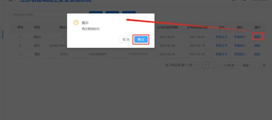 人員離開本單位時(shí),檢驗(yàn)檢測(cè)機(jī)構(gòu)應(yīng)及時(shí)刪除人員信息。點(diǎn)擊【刪除】按鈕【確定】刪除。