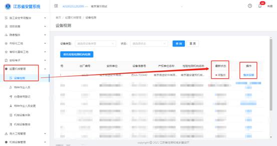 “江蘇省建筑施工安全管理系統(tǒng)”中起重機(jī)械檢驗(yàn)檢測(cè)自動(dòng)生成報(bào)告功能試用期為2021年7月10日至9月30日。試用期間,各地建筑起重機(jī)械檢驗(yàn)檢測(cè)機(jī)構(gòu)可通過(guò)檢測(cè)報(bào)告掃描件上傳或線上填寫檢驗(yàn)檢測(cè)符合項(xiàng)自動(dòng)生成報(bào)告兩種方式,在系統(tǒng)中提交檢驗(yàn)檢測(cè)結(jié)果。各地建筑起重機(jī)械安裝檢驗(yàn)檢測(cè)機(jī)構(gòu)在試用期間按《起重機(jī)械檢測(cè)自動(dòng)生成報(bào)告功能操作手冊(cè)》(見附件)在系統(tǒng)中試用,相關(guān)修改建議請(qǐng)于9月10日前由設(shè)區(qū)市建設(shè)主管部門收集后向我廳反饋。起重機(jī)械檢測(cè)自動(dòng)生成報(bào)告功能自2021年10月1日起正式使用,正式使用后起重機(jī)械模塊將取消檢測(cè)報(bào)告掃描件上傳功能。