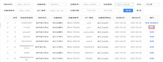 2.如需查詢已完成檢測(cè)流程的設(shè)備信息,可在狀態(tài)欄點(diǎn)擊【已處理】查詢,查看檢測(cè)報(bào)告。