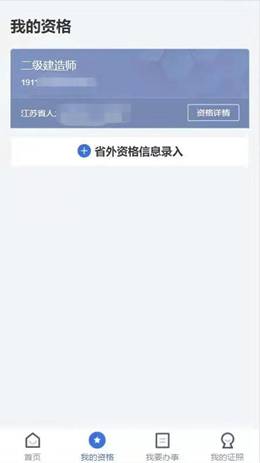 點(diǎn)擊“我的資格”→“省外資格信息錄入”。如圖: