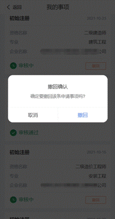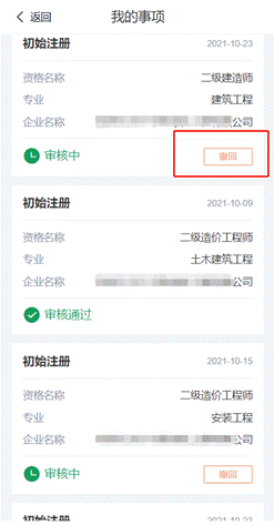 (2)省住房和城鄉(xiāng)建設(shè)廳已受理審核中的,撤回申請流程同上;已審核完成的,無法撤回申請。