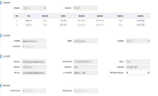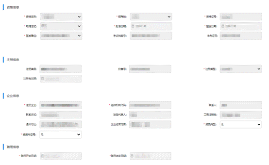 ③職業(yè)資格人員須如實(shí)填寫聘用信息,聘用時間需與勞動合同一致(合同期限應(yīng)自申請注冊日起三個月以上有效期)。