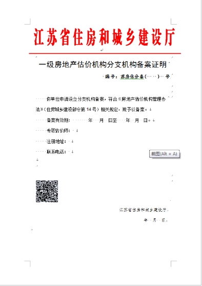 (二)一級資質的房地產估價機構分支機構的備案證明。